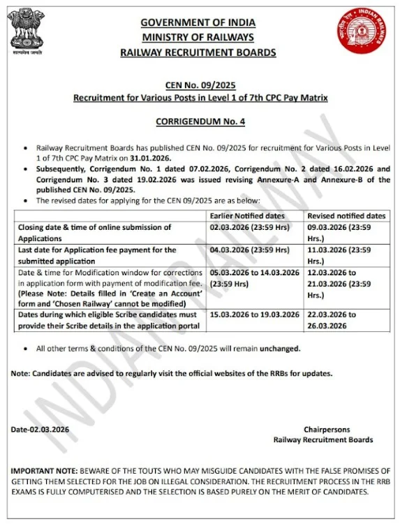 RRB Group D Recruitment 2026 (Date Extendent)– रेलवे ग्रुप-डी भर्ती Full Notification, Eligibility, Vacancy, Apply Online Guide – Full Details